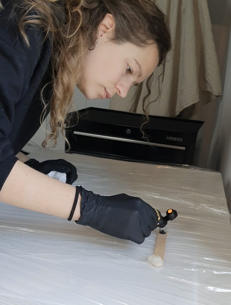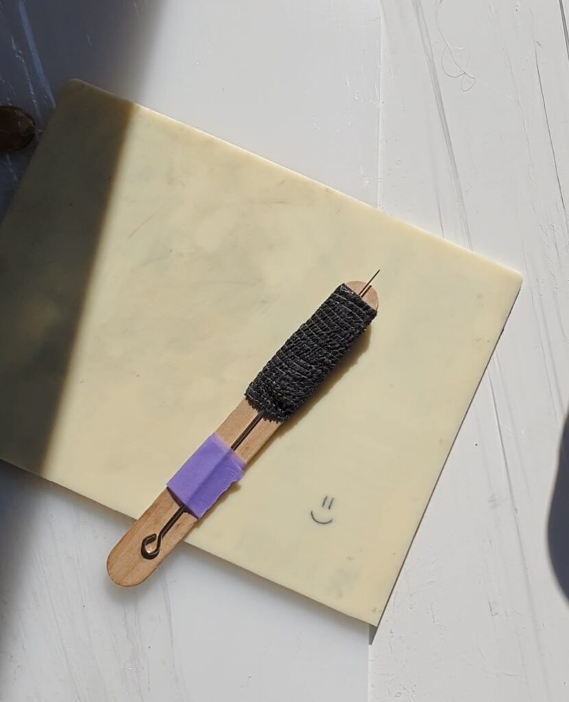 Waar gebruik je houten spatels voor tijdens het tatoeëren? Vaak worden deze gebruikt om vaseline op te bevestigen en jouw inkt cup op te zetten, zoals ik hieronder heb gedaan. Je kunt 100 stuks aanschaffen voor €2, maar in dit geval zitten ze ook in de tattoo kit voor starters.