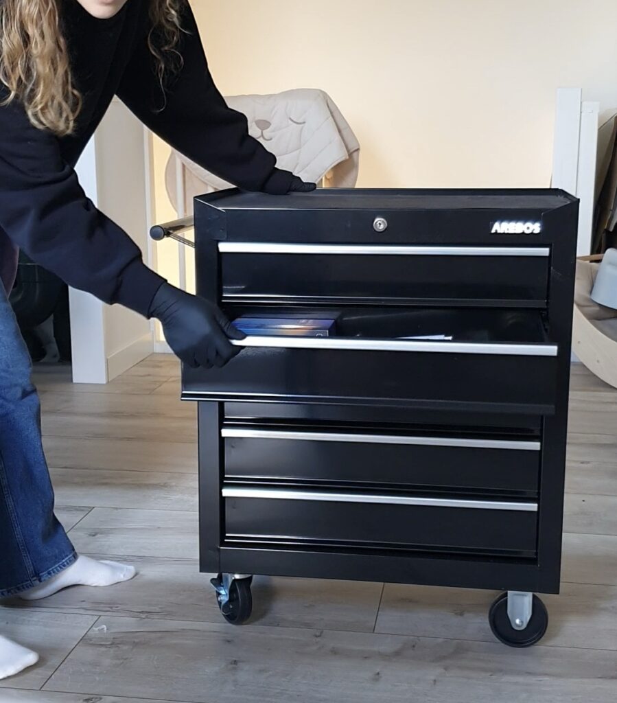 Tattoo artiesten hebben naast het bed waar hun klant op ligt ook altijd een werkkar staan. Ik had ook een plek nodig voor al mijn tattoo spullen, dus heb ik de Arebos Ladekast aangeschaft voor €130. Eigenlijk is dit een werkplaatswagen, maar ideaal voor tattoo spullen. Zoek maar eens naar een traditionele tattoo-werkkar, dan betaal je driedubbel de prijs. Een goede deal lijkt me zo!