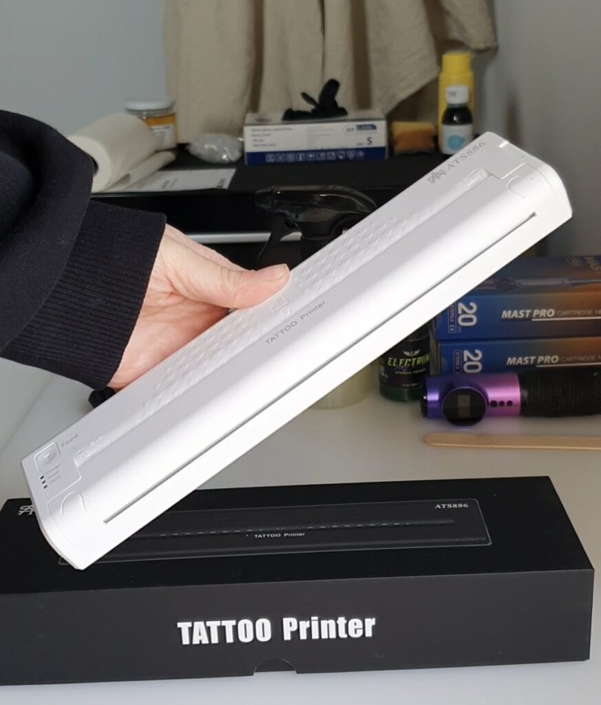 Ik heb gekozen voor de Yilong ATS886 Bluetooth Wireless Tattoo Stencil Printer. Ik had er natuurlijk geen verstand van voor de aanschaf, dus keek ik een YouTube video waarin ze tattoo printers vergeleken. Daar kwam deze voor mij als winnaar uit. Geen dag spijt van gehad. De printer is makkelijk, super licht en doet wat ‘ie moet doen.